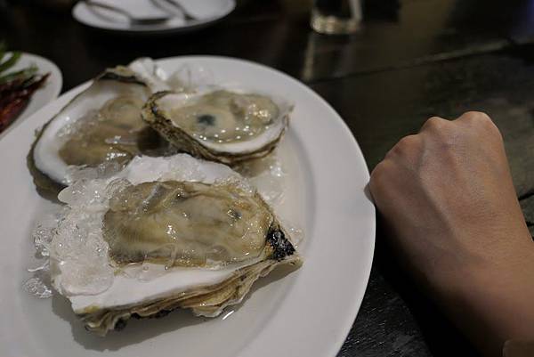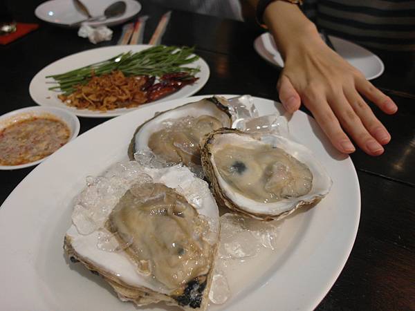 在地人說吃這生蠔一定要搭配旁邊紅色的粉跟不知名的綠色草